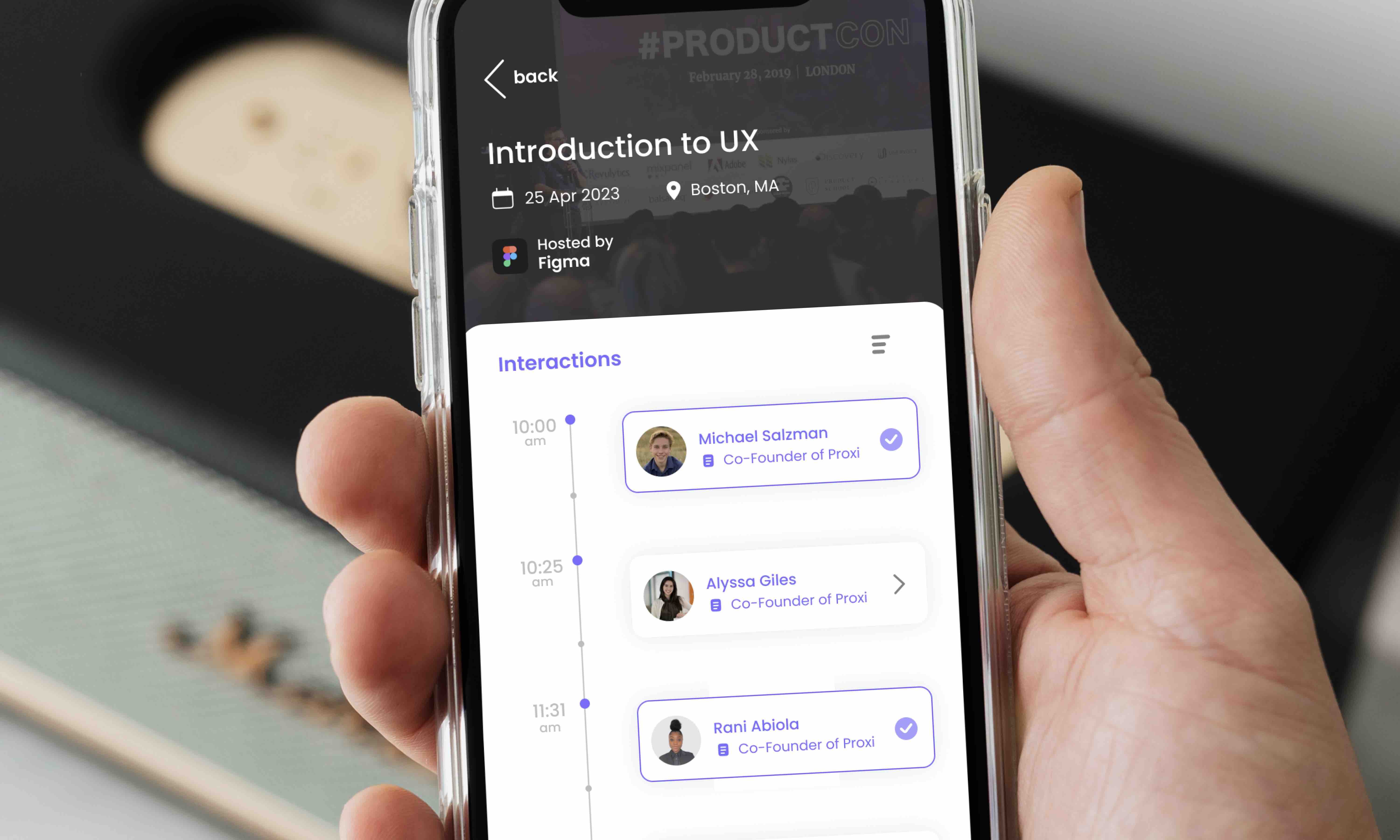 Proxi is a contact management app to streamline and accelerate networking at in-person events.